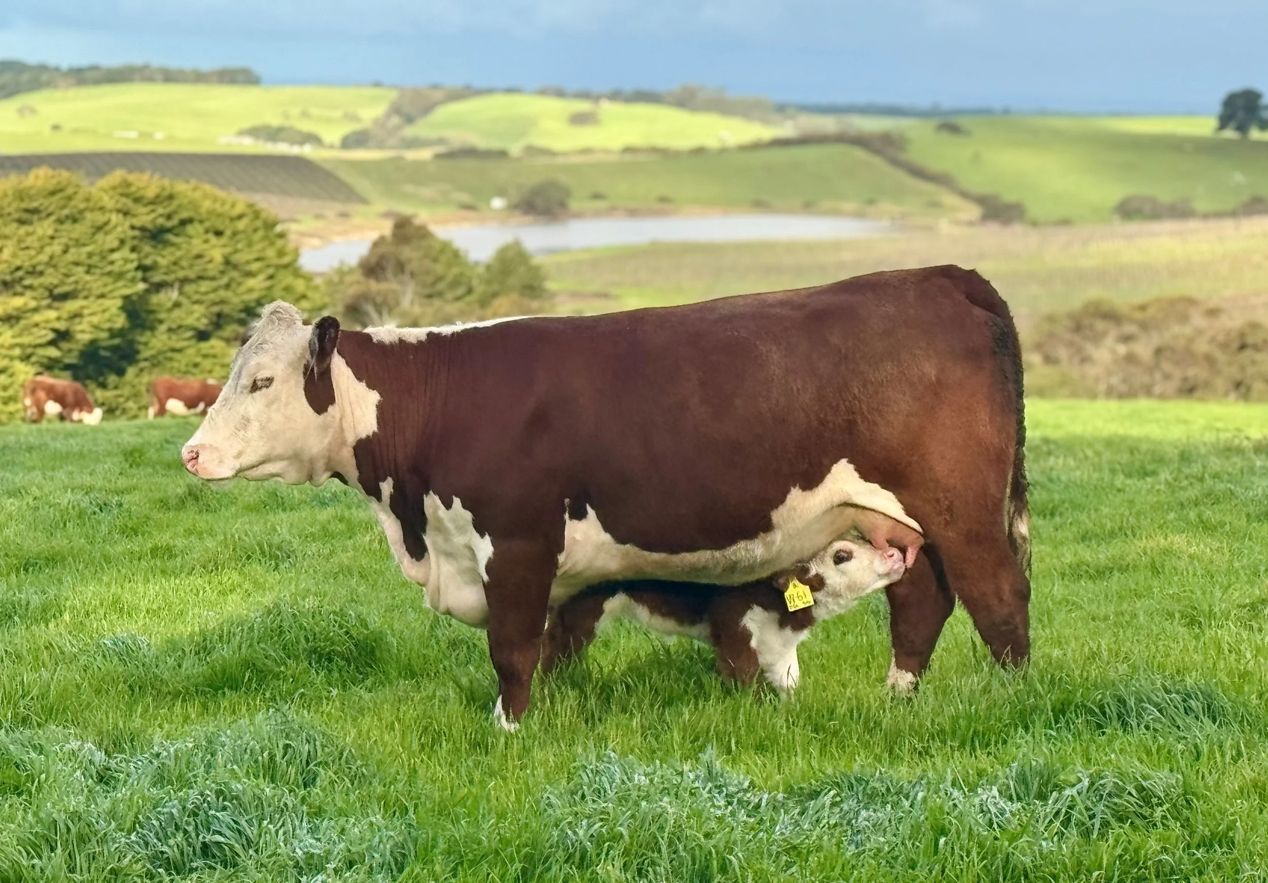 Gallipoli Daughter Kilkerrin Nikki T002 with her Days Landlord heifer calf Kilkerrin Nikki W008 (Days Landlord x Allendale Gallipoli x Koanui Techno out of Minlacowie Nikki C77 - Mother of Minlacowie Jubilant)